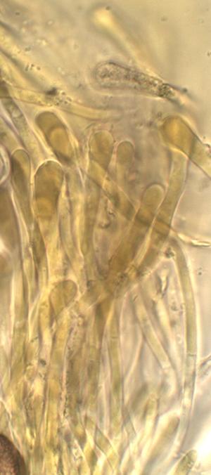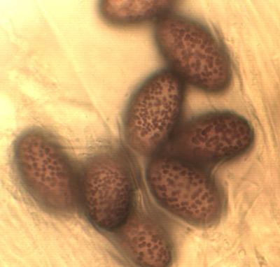 Ascosporas elipsoidales, algunas con los polos agudizados 20-23 X 11-13 um, episporio verrugoso.