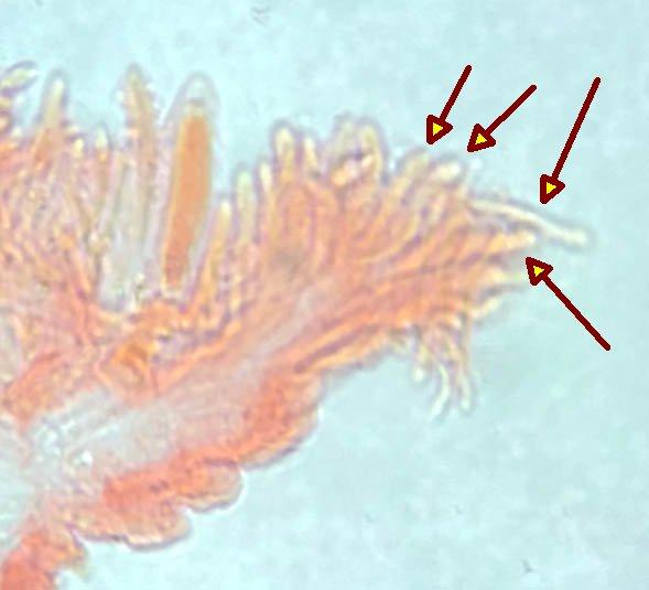 Marginal cells: Elongated, one cell protruding, larger and more pyriform around the base, yellowish at base.