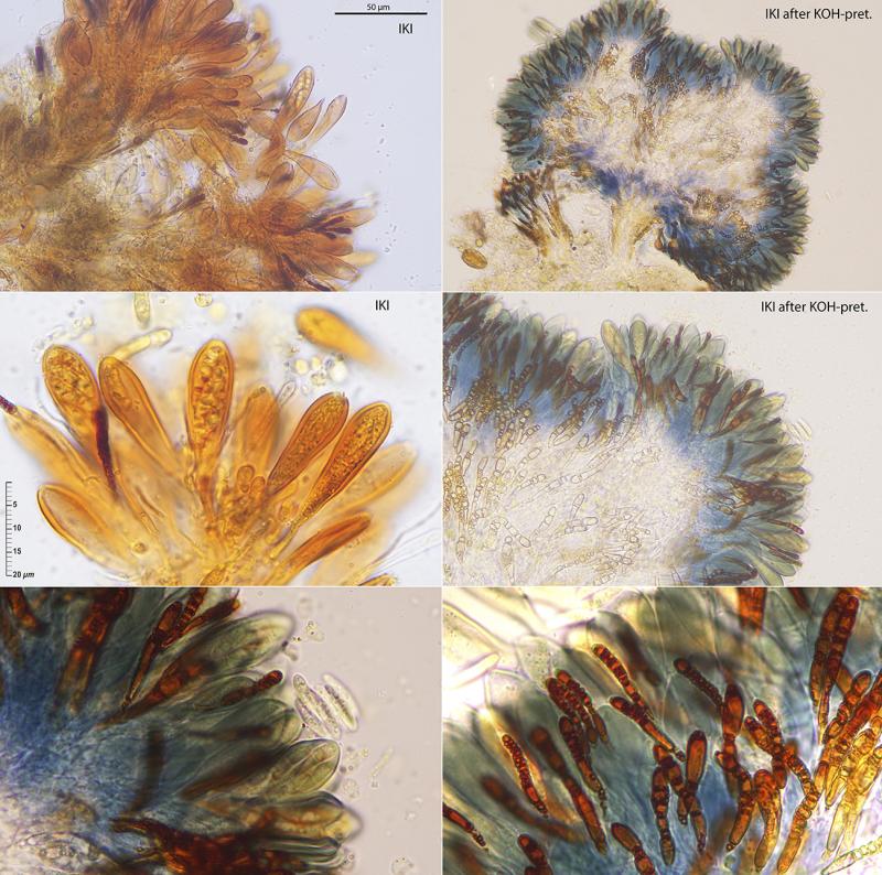 and: Asci amyloid, mit jung deutlich amyloidem Tholus. Sporen 1-septate.