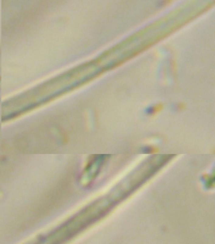 I tried to observe many spores. I think I saw fragments but not many. It is very difficult to count the septa, beaucause I cant see the whole spore. I was able to count up to 14. The spores are narrowed at the septa.