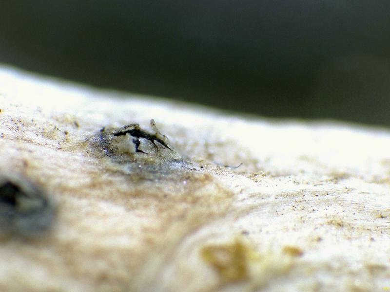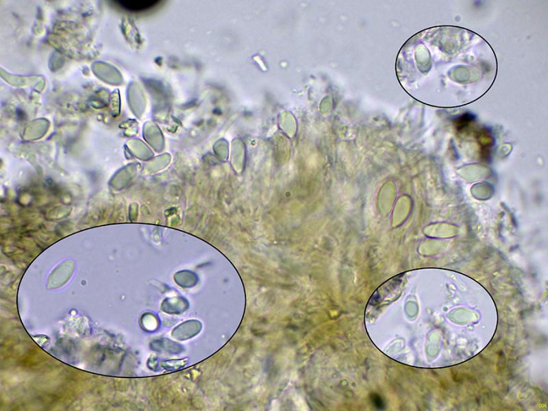 These conidiogenous hyphae produce ellipsoidal, hyaline conidia with one or two large lipid droplets inside. Free conidia with brown intracellular pigment were also observed, which could perhaps correspond to mature conidia.