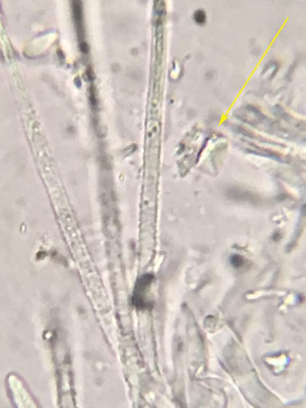 Spores hyaline, fusiform, 5.6-8.8 x 1.7-2.5µm