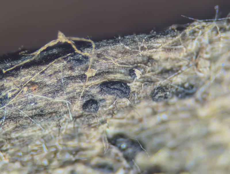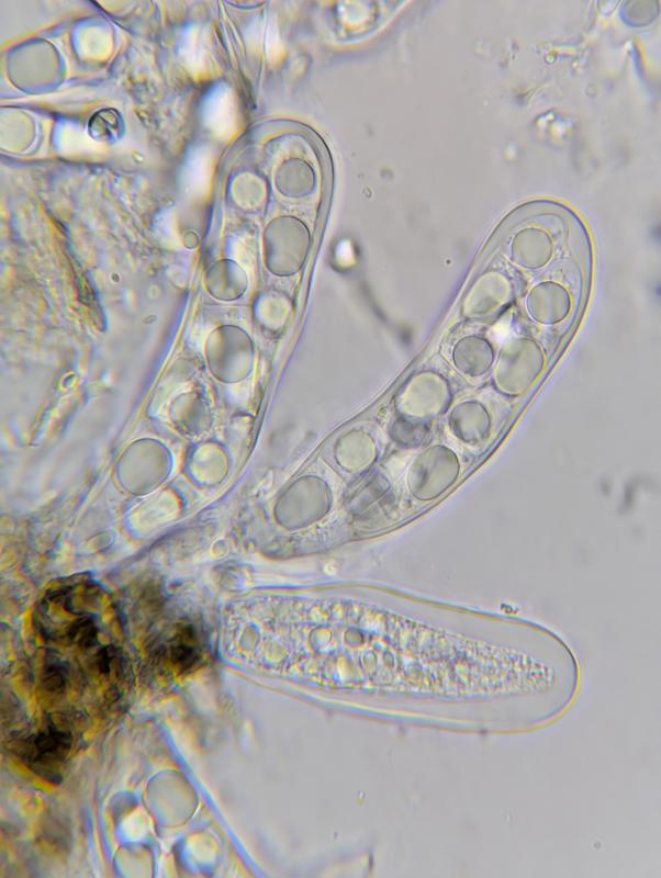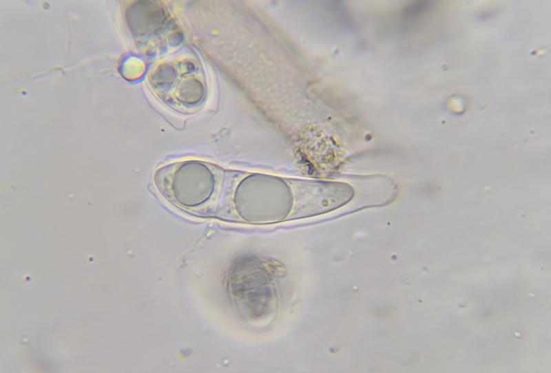 These tiny (0.4-0.5 mm diam.), whitish, short-stip