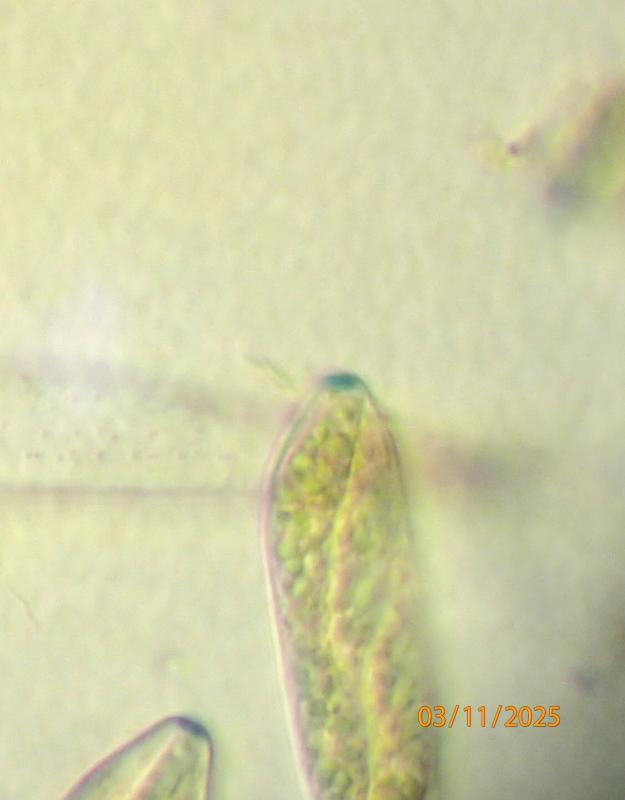 These tiny (0.4-0.5 mm diam.), whitish, short-stip