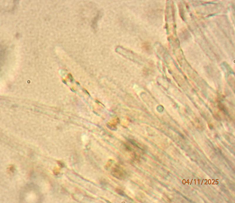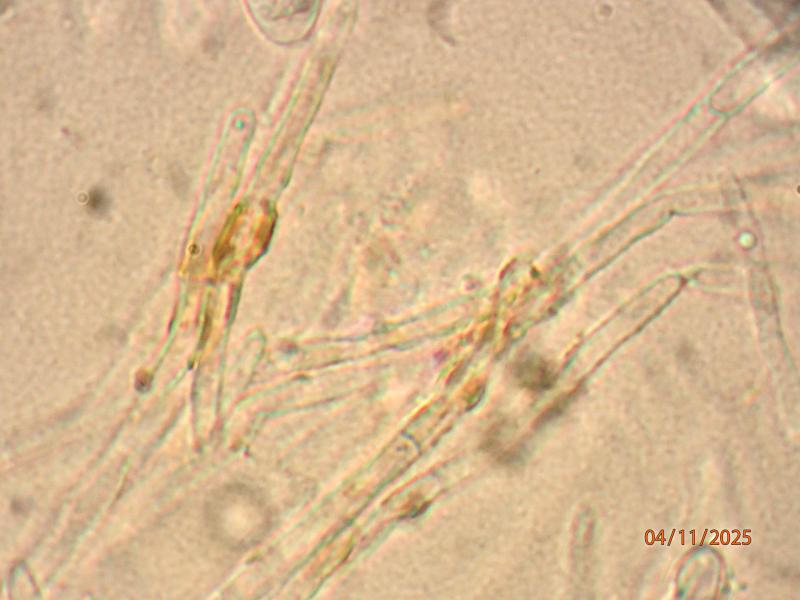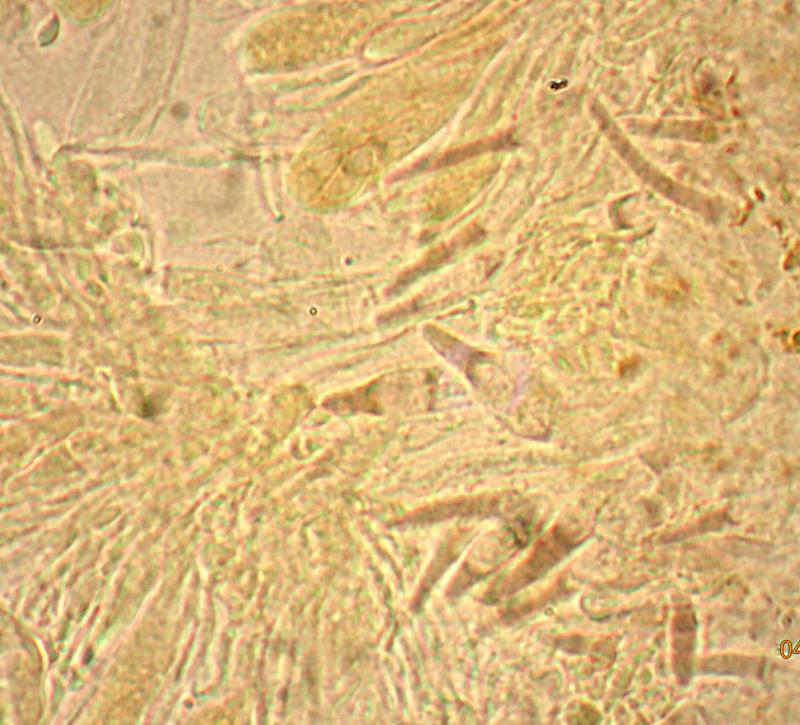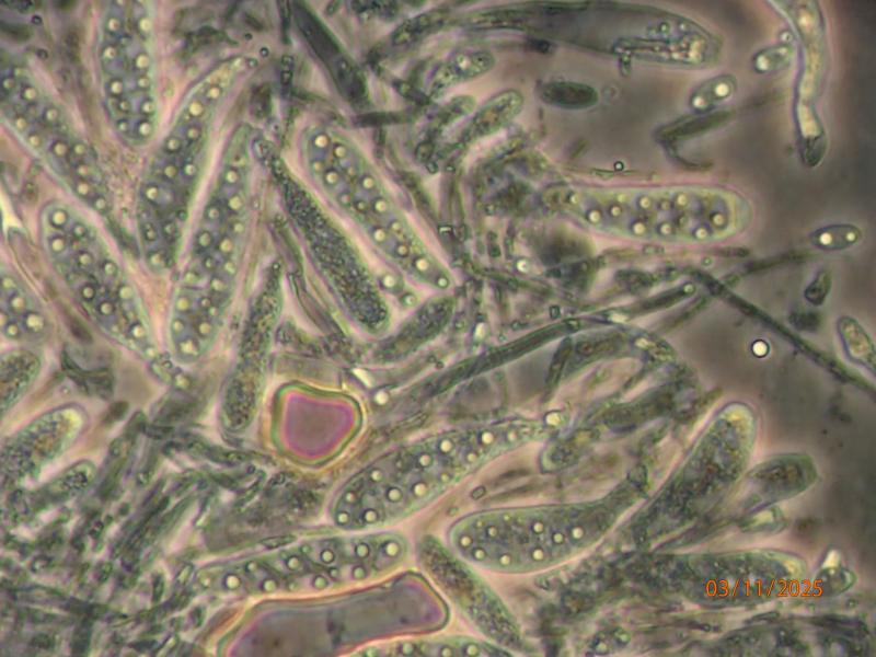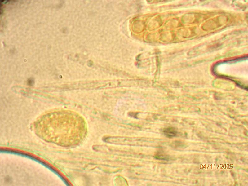 Hi! One more found on old Populus tremula log in Oslo, Norway. Apos 0.1-0.4 mm. Spores ca. 6-7x3-3.5 micr. with two large guttules. Hairs with glassy, amyloid tips. Some hairs with orange incrustration/resin. Asci IKI+ (blue in Lugol). Not sure about croziers.