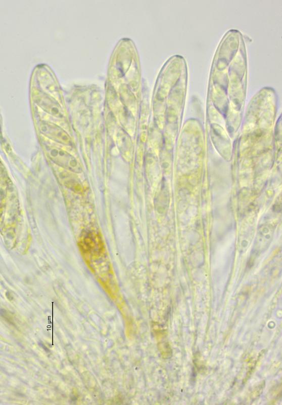 Trouvé sur tiges mortes de Rubus (ronce, pâturages boisés à 980 m), apothécies de 0, 4 – 1.25 mm de diamètre, asques 60–74 x 8–10,5 µm, avec crochets, IKI+, spores hyalines, 9,5 - 12 x 3,5–4,5 µm, paraphyses septées. Rien trouvé de correspondant, c'est pourquoi je sollicite votre aide. Merci d'avance.