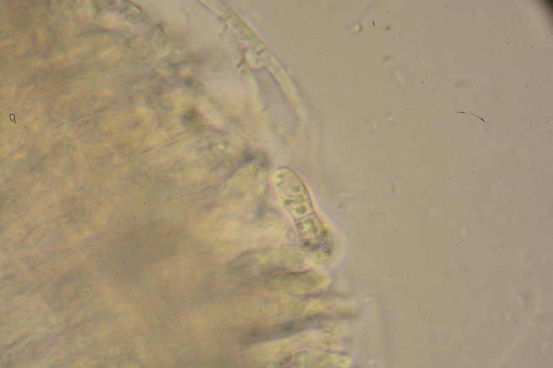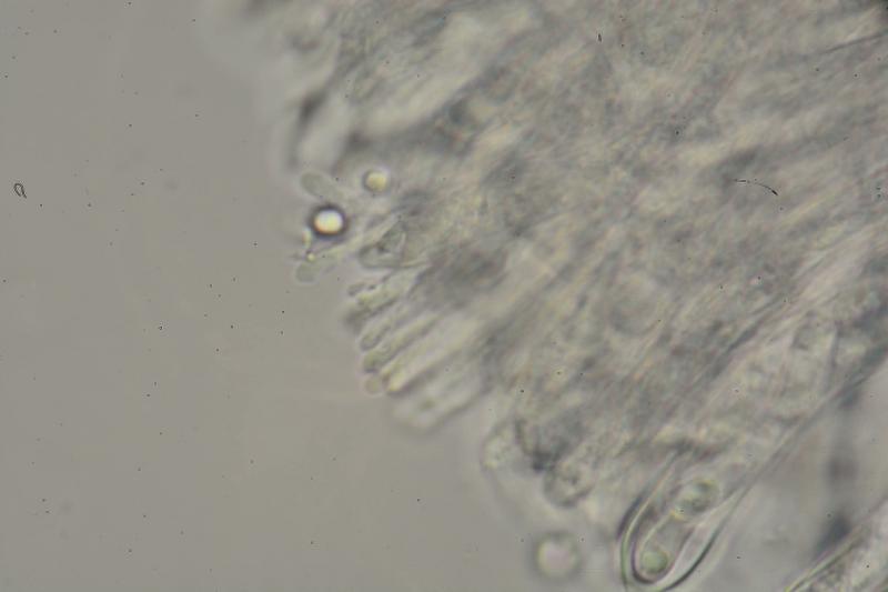 I haven't obtained any free spore print, but I believe I observed mature spores, crusted in the center, with a septum.