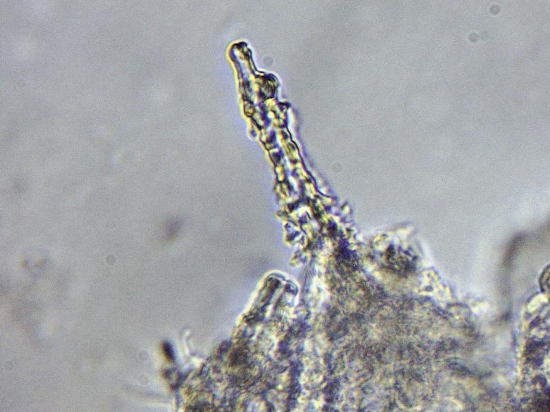 No asci, no spores... just these structures, maybe incrusted hairs??
