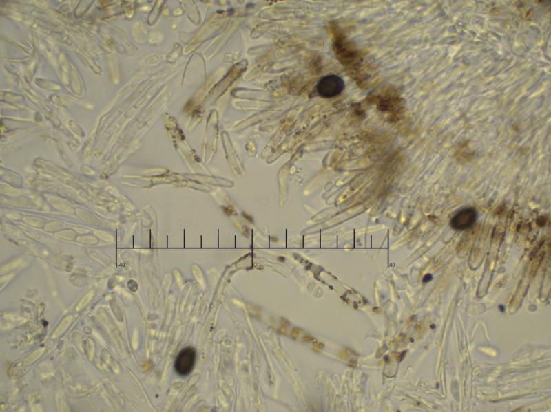Thomas LæssøeSpores brownish, typically 4-celled; 26.8 x 2.4;