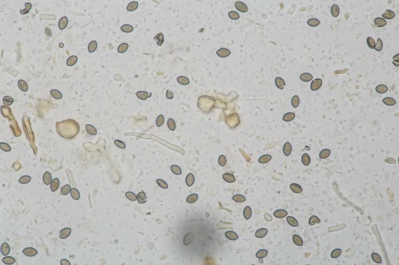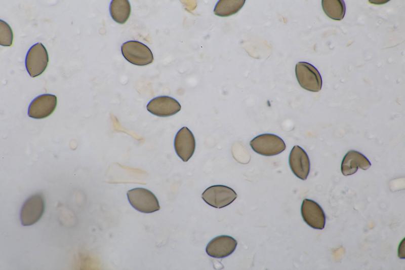 Different references give different spore size ranges for M. lagenaria, and if anything our spores seem small by comparison.   Our collection would appear to constitute a range extension for M. lagenaria, if it can indeed be said to be that sp..  Is there another possibility?