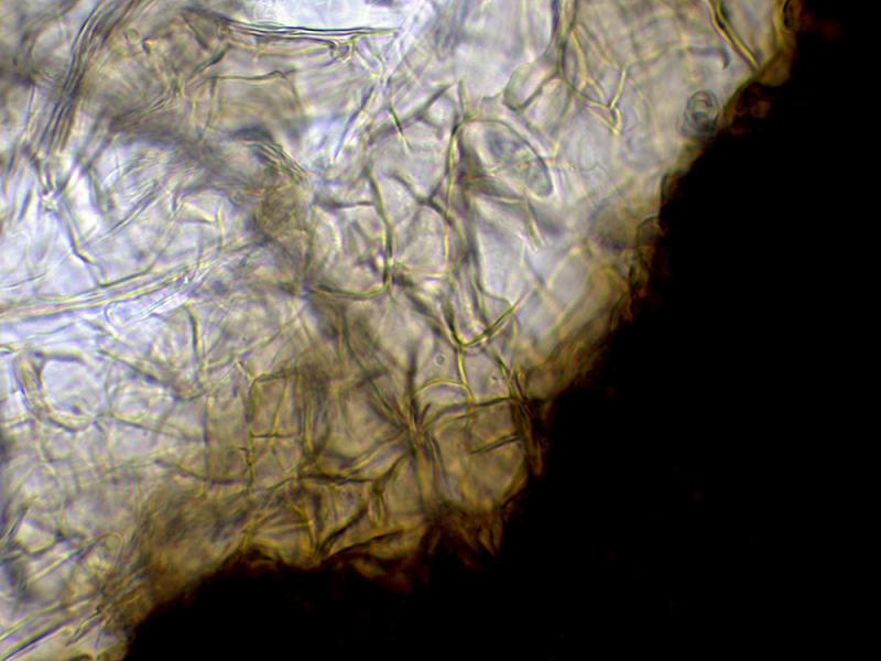 Spherical ascoma with a blackish, globose-angular wall, from which highly pigmented rhizomorphs with few septa sprout.