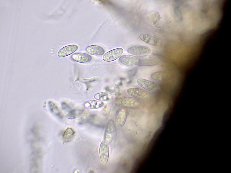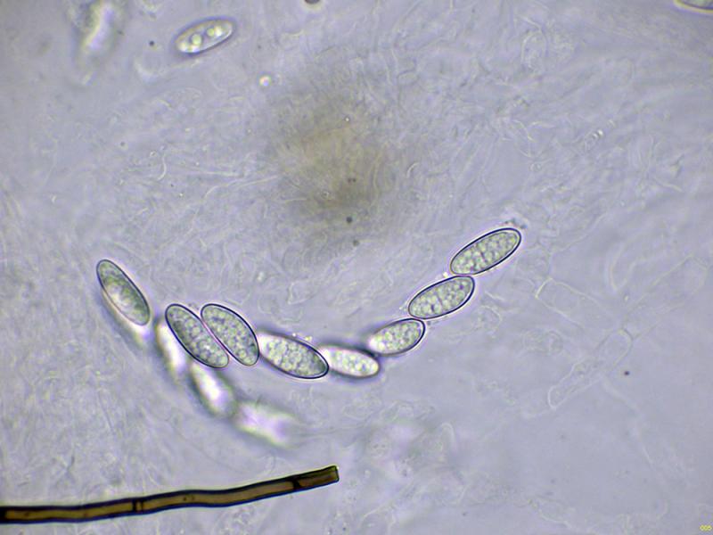 Cylindrical-ellipsoidal ascospores, completely filled with guttules, inamyloid, and with the following measurements in water: