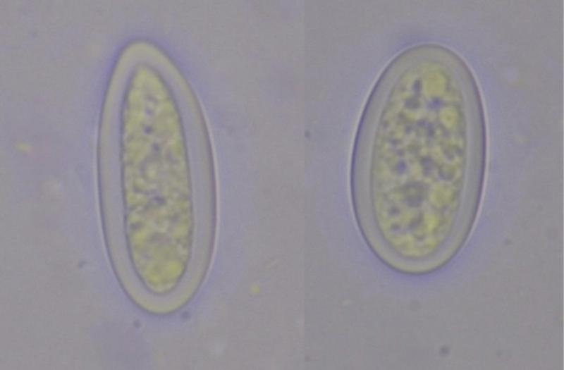 The spore wall is about 0,96-1,5 µm (living) and 1,7-2,8 µm (dead)