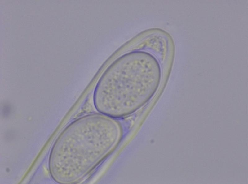 The ascospores are cylindrical to ellipsoid and are filled with small guttules.