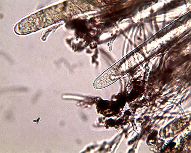 largura he medido sobre 140 micras y cada trocito 4-10 x 3-3,5 micras.