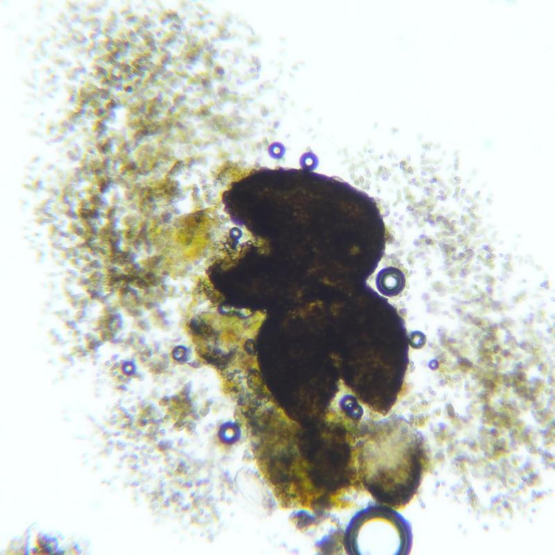 Host lichen was growing on basalt blocks near the waterline of a dyke. Perithecia mainly on the apothecia of the host. Conidia bigutate, ellipsoid sometimes with little deformations, measuring 7,5-8,5 x 3,0-3,5 ?m.