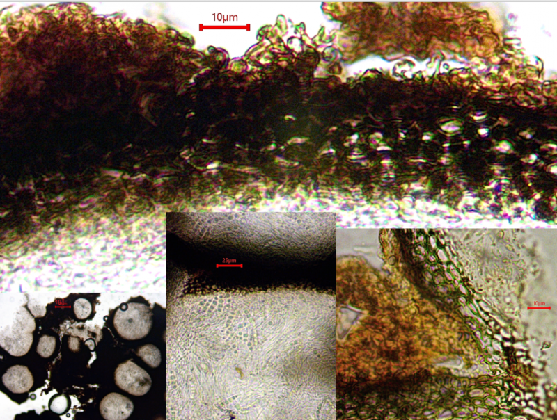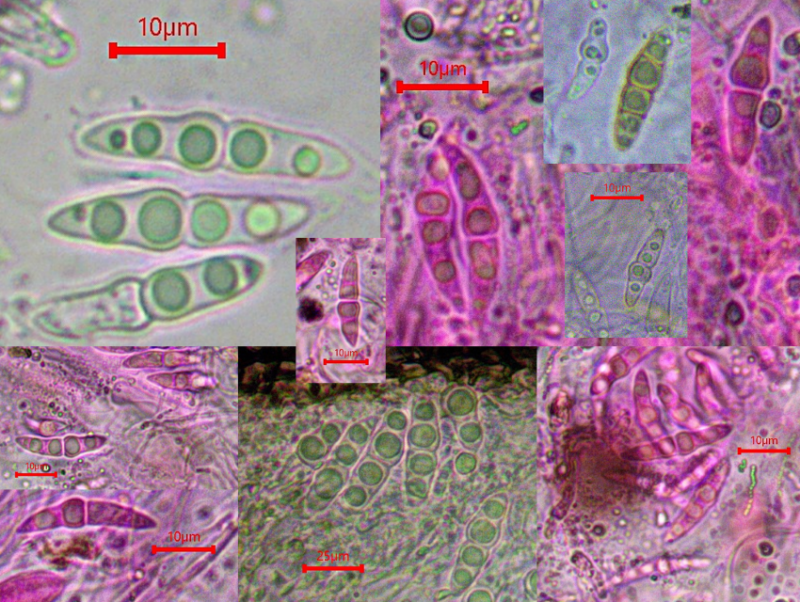 this one is especially interesting for me because it is the host of an Unguiculariopsis that I plan to show here soon. First, I would like to know more about hte host. Growing on Quercus (Germany, Baaria), attached twigs at lying middle-aged log. The stromata contain some perithecia with white content (hyaline spores at least for long time). The asci are iodine-negative and bear croziers. There are plenty periphyses. The spores are for a long time hyaline, with the second cell distinctly enlarged, and measurea about 19-23/4-5,5 µm. The pink color in the fotos is from phloxine (mixed with water).