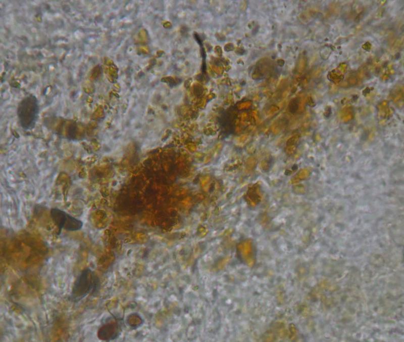 Fruitbodies sessile At attachment point some yellowish crystals, asci IKI rb, *34-45x6.5-8 µm, croziers+.