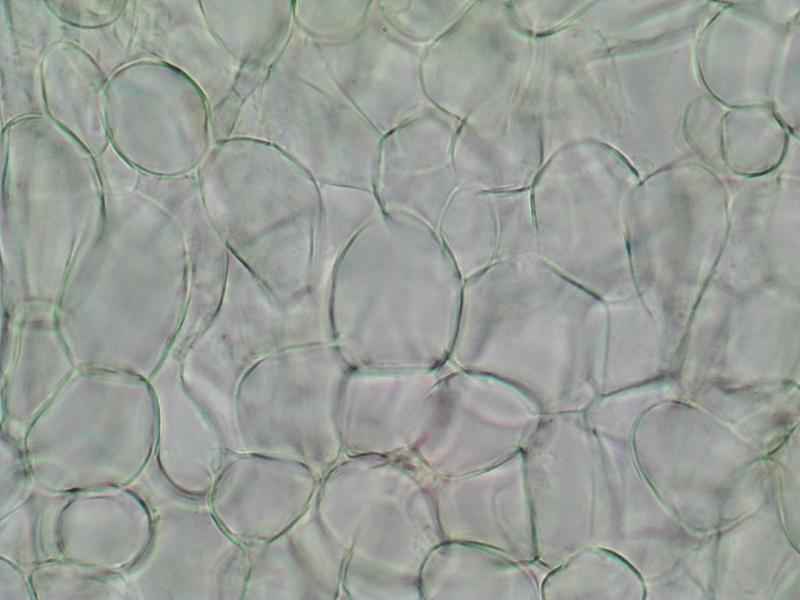 Hyphae of the excipulum globose-angularis in texture.