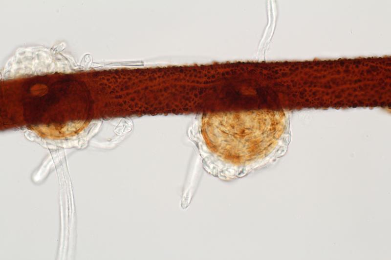 Davon sammelte ich einige Apothecien und die darumwachsenden Laubmoose. Was diese Aufsammlung ergeben hat, zeige ich mit einigen Bildern.