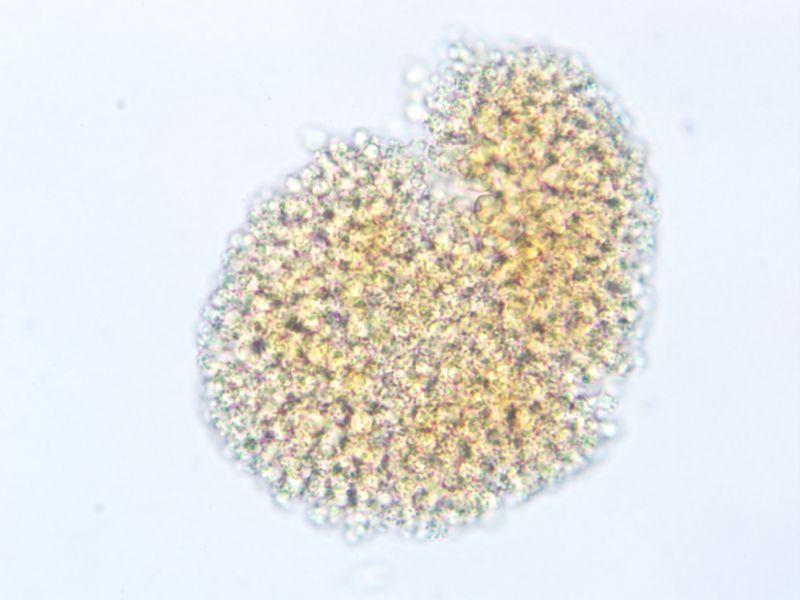Poils cylindriques 10-30 x 3-6 µm, 2-4 septés, hyalins, plus ou moins courbés ou droits et pourvus d'une granulation en surface.