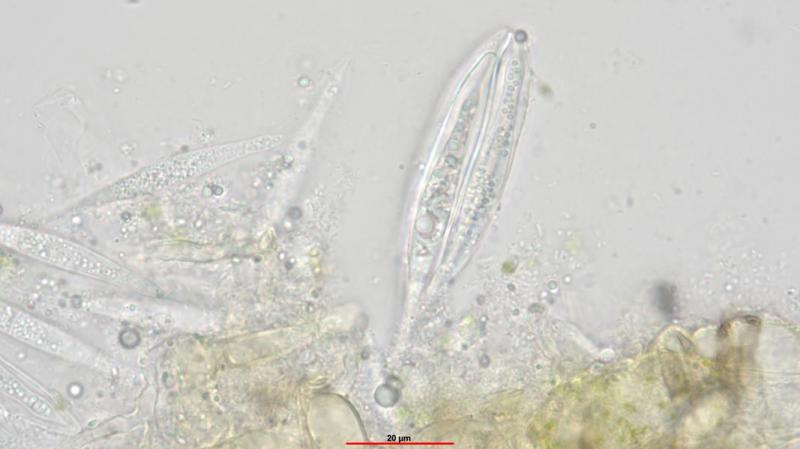 Spore width 6.21 , clavate/fusiform (P. marchalii 5.4-5.6, fusiform)