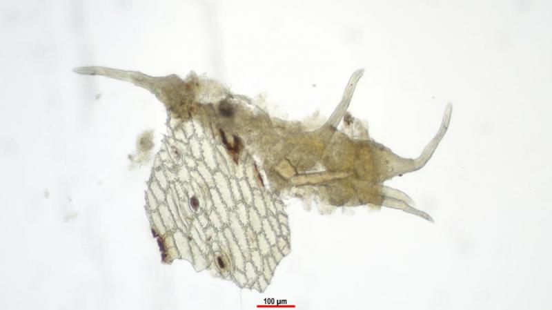 Rostrum: Pigment distinctly lighter in colour. Very long conical cells from base to apex (basal 7 my, apical 3 my) with a thicker cell wall. Cells septate ( 5-7).