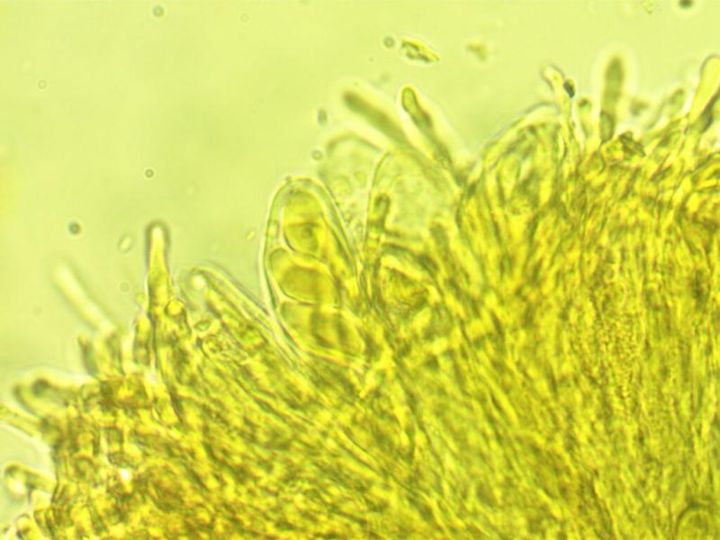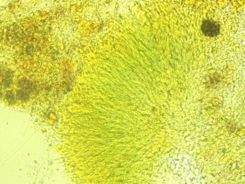 Many thanks for your response. Here are a couple of photos showing a very slight blueing of the asci en masse-perhaps my Melzer's needs replacing! Individual asci don't seem to show much reaction. Didn't realise that Mniaecia could be gelatinous like this.