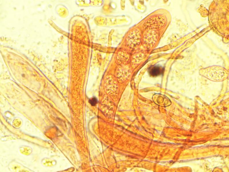 Asci: clavate, rather thick walled, 80-98x14-16µm.
