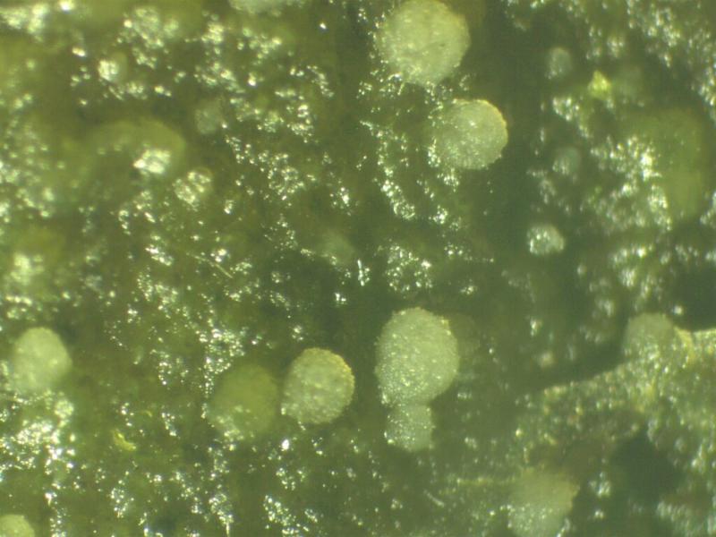 Ascomata consisting of more or less globose, whitish, gelatinous pustules up to c.0.5mm, seated or even immersed in algal scum.