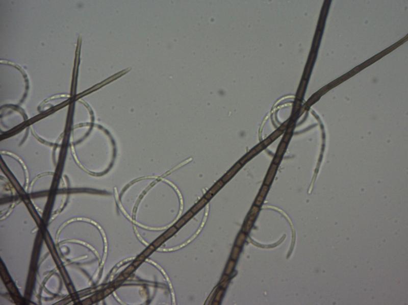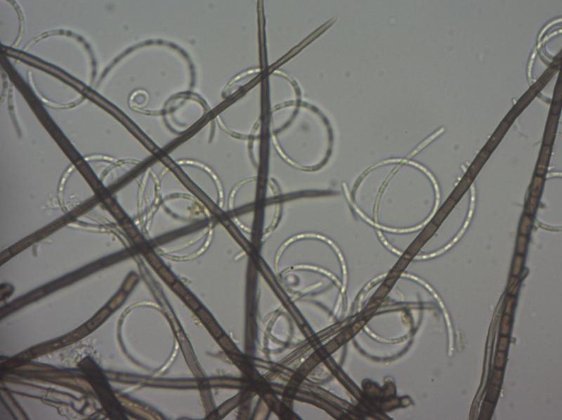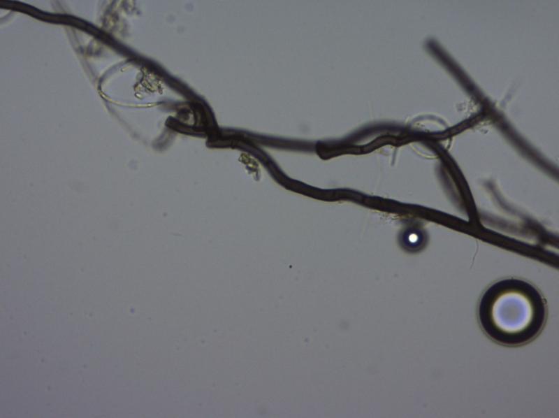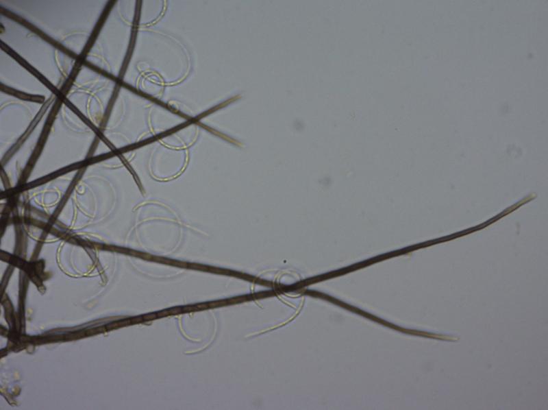 Dear Forum,On the bark of Fagus I found some bright yellow-greenish colonies, rather cottony.Mycelium was brown, septate and branched, about 6µ in diameter. The dark coloured conidiophores were straight and 600-1000µ long.Conidiogenous cells were not foud. Conidia were colourless when seen solitarely but greenish-yellow in mass.Using the key in Goos(1989) I came at Helicosporium virescens, nowadays Chloridium virescens.