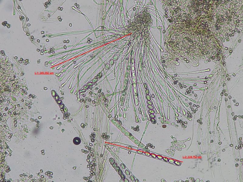 Peziza spec. / Nectria spec. examinée au microscope