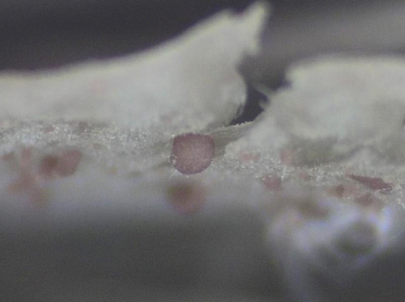 De façon inattendue sous le microscope lors de l'identification d'un Entolome je suis tombé sur les traces d'une sorte de Peziza/Nectria. Après quelques recherches, j'ai pu trouver des spécimens sur les lattes. Dont j'ai pu prendre quelques photos. Malheureusement plus de matériel pour le microscope.