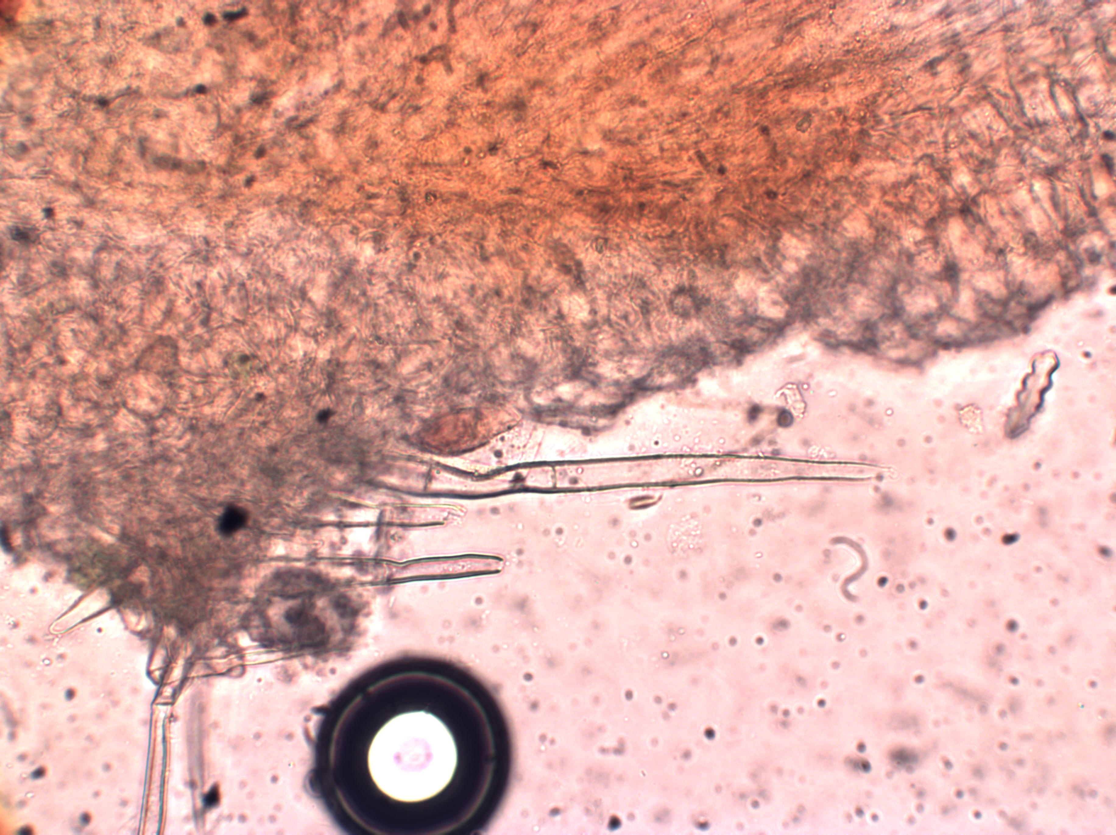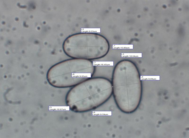 I struggled to see the granular contents of the spores which Kotlabaea is supposed to have. I then also found a few septate hairs but this species should not have them. I did notice that the entry for this species in the Database does show minute hairs and although the sketches show them as non-septate the description given mentions septa.