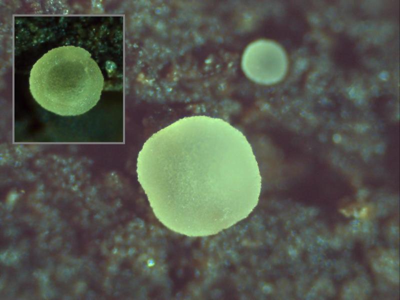 Wonder if anyone can help here with this species which I thought was Durella suecica, but is IKI -, the spores are slightly larger with larger apothecia <1.0mm. Gregariously scattered under fallen branch of Pinus sylvestris with flattish surface, concolourous margins and exteriors of pale cream colour. No marginal hairs.Ascospores: 6.53 - 8.03 x 3.31 - 3.63 µm, hyaline, non-septate, polar drops at each end, one end slightly larger both rounded.
