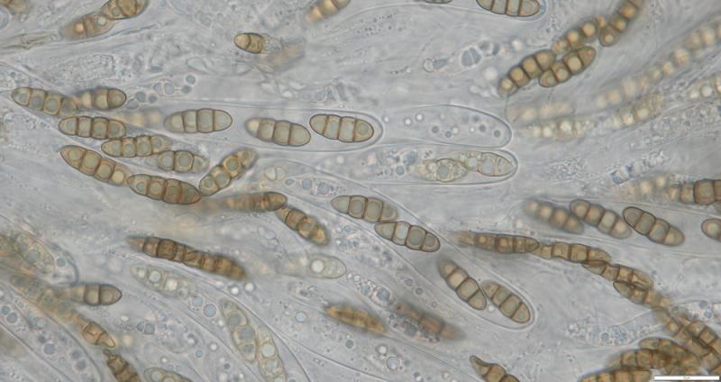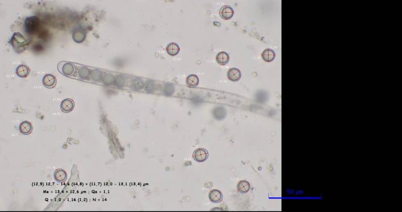 Les spores sont lissent avec un guttule à peine visible et ont une paroi épaisse