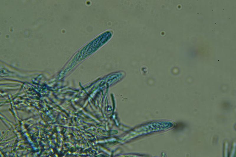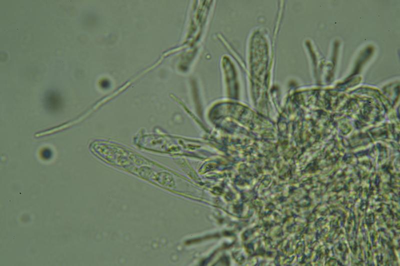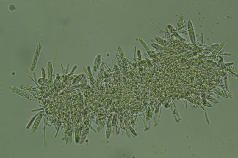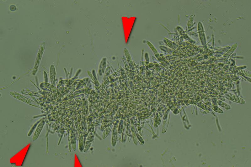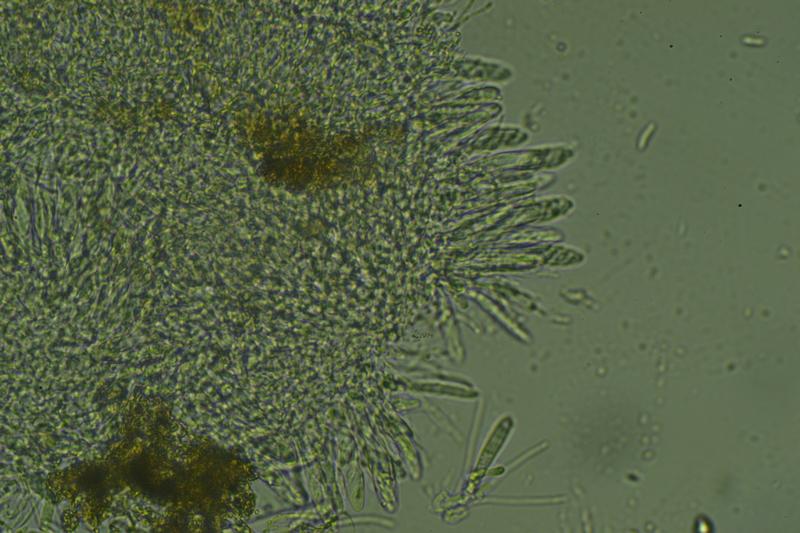 No he podido medir esporas, seguro son jóvenes aún.