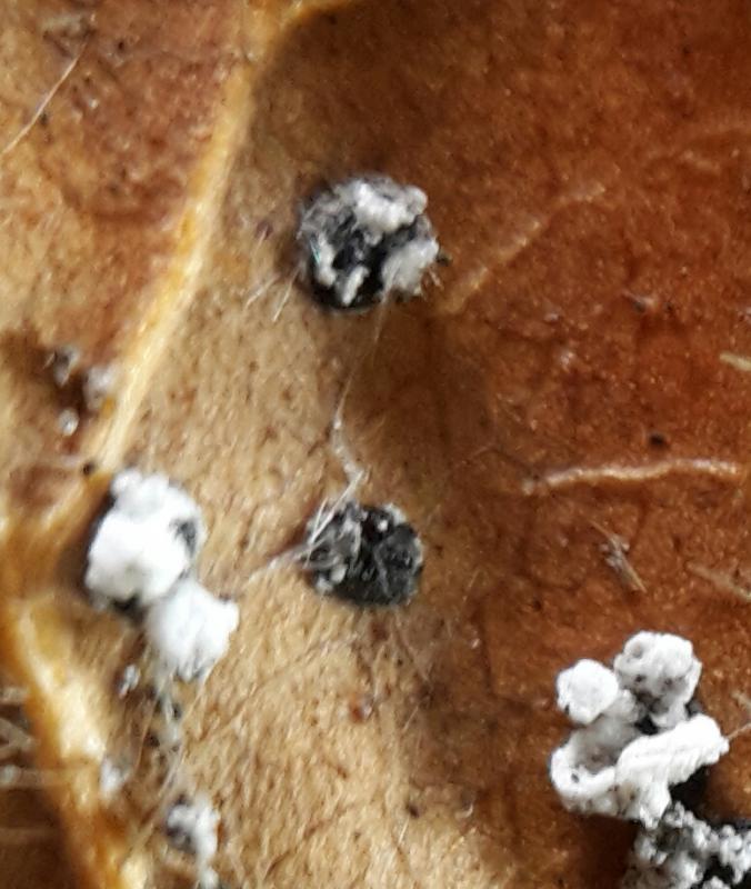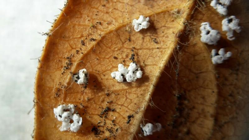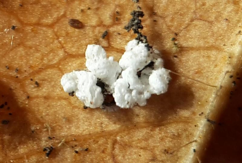 Joeri Beliswhite fruitbodies on dead leave of Viburnum tinus