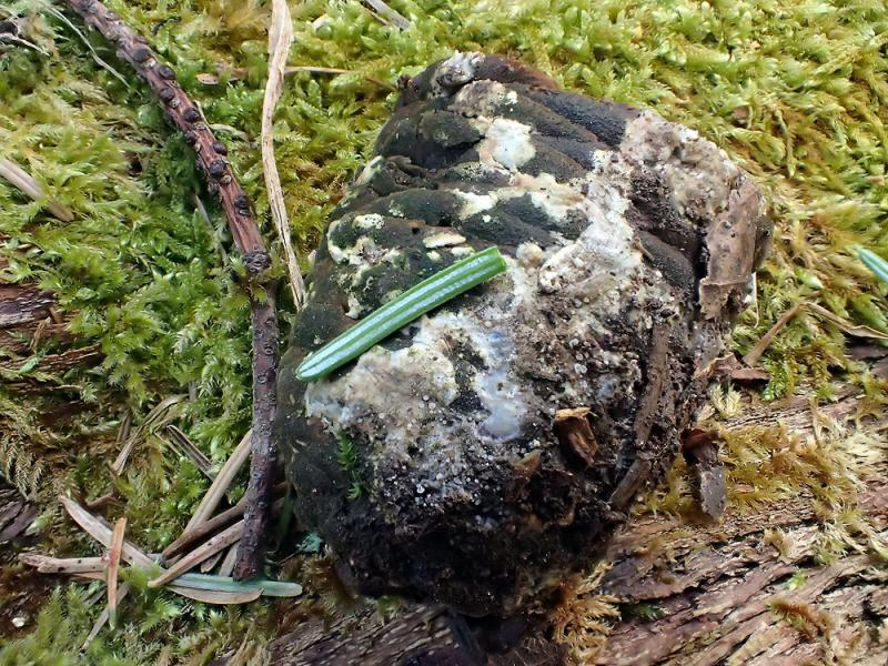 Quelqu'un aurait-il une idée pour cet asco résinicole blanc (stade imparfait) sur cône de sapin argenté (Abies alba) ?Merci d'avance !