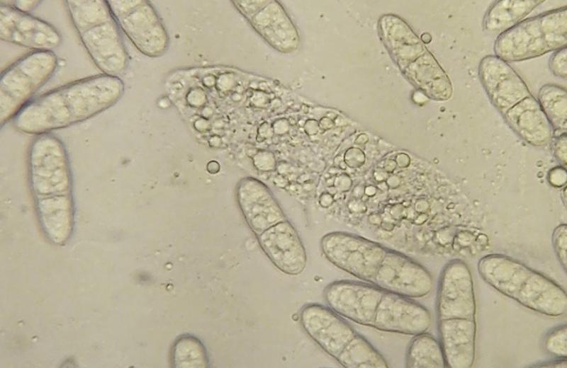 Once again, I found out that mushrooms require a lot of patience from us. Today, for the third time, I decided to explore this collection because I noticed the free spores on the surface. Apicule was clearly visible on these spores. Therefore, I believe that I was previously researching immature spores.