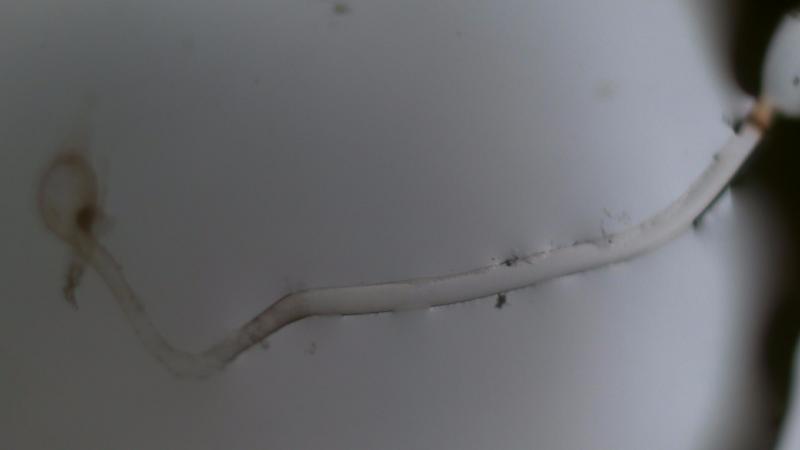 Sporangiophore: 96.4 um in diameter, length 2,538 mm. With an orange ring at the end near the Subsporangial swelling. For P. crystallinus this ring is yellow.