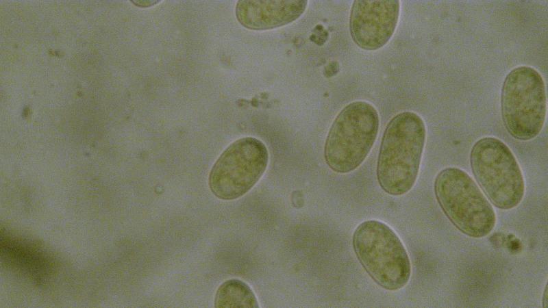 Spores: 11.6-14.1x6.6-7.7 um