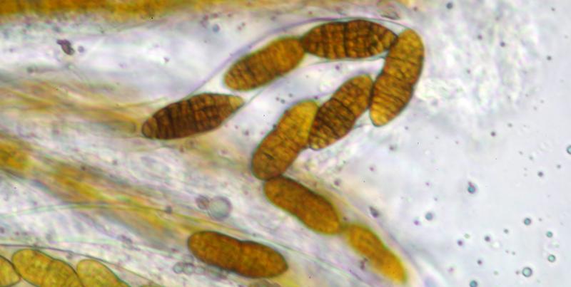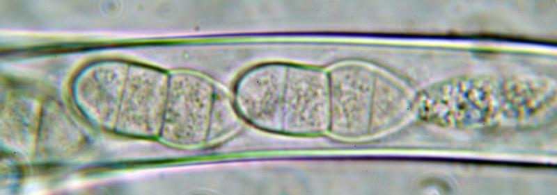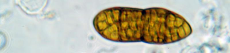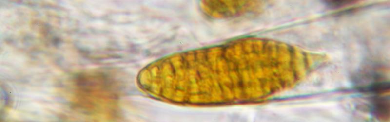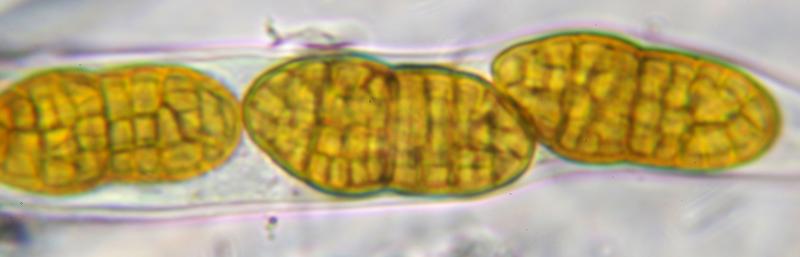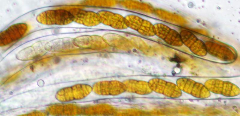Ascomata developing under the bark (Betula), erumpent, up to 6 together. Ascomata black, globose to ellipsoid with slightly papillate ostioles. Asci about 270 x 18 mu, bitunicate and uniseriate. Ascospores 30-40 x 13-15 um, hyaline turning brownish, firstly one median septum, subsequently 3-septate and becoming golden yellow and muriform. End cells appear to remain paler. Presumed anamorph with hyaline, cylindric conidia with small guttules, about 3 x 1 um.