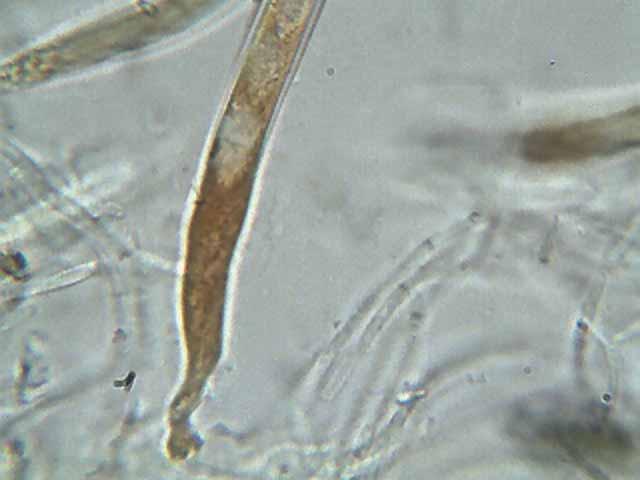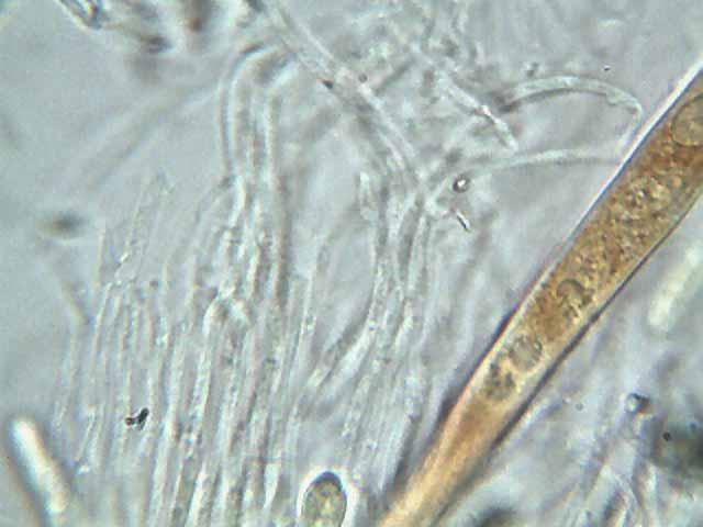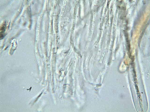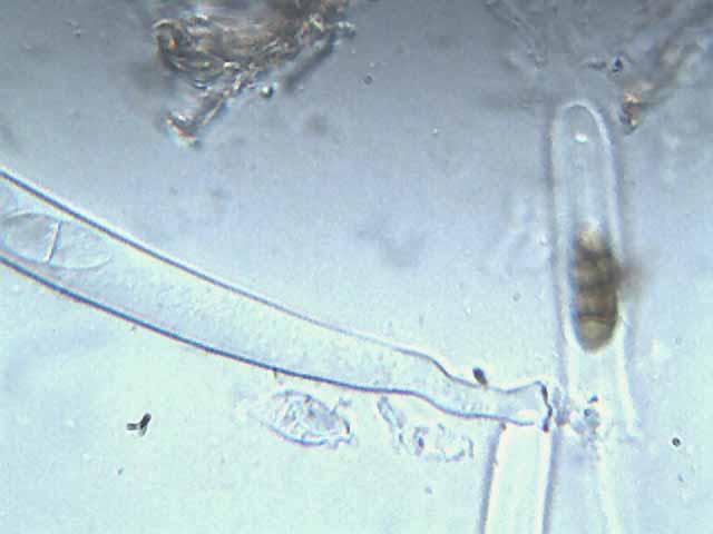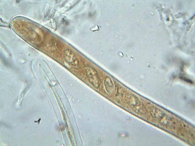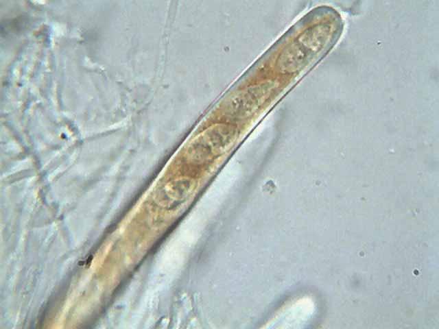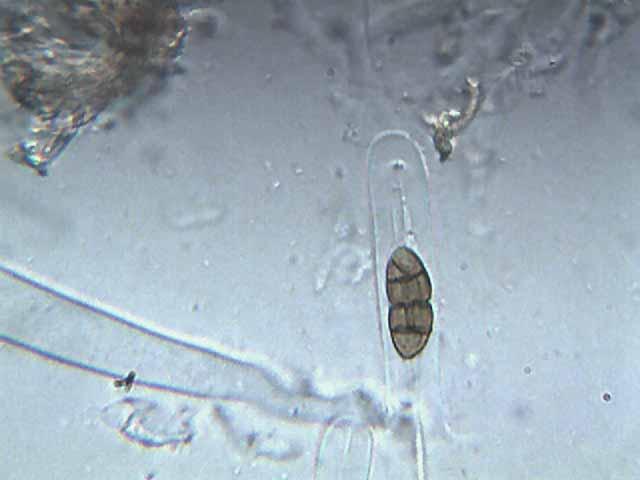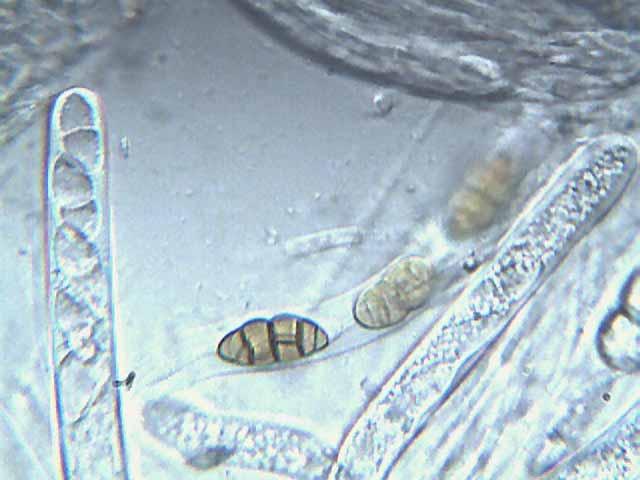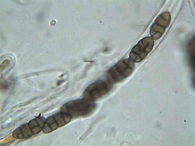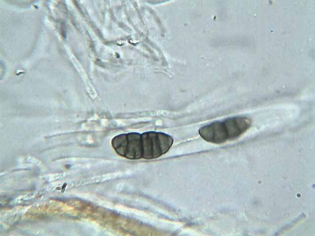 Esporas de 24--27 x 10,5--12 de 3 septos transversales , pero he visto alguna de cinco.