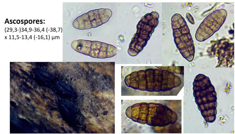 Dear friendsRecently I tested the nice specimen of a fungus with hysterothecia from wood, collected in 2004 in the Nature Reserve "Mys Martian" (Crimea, Ukraine, subtropic natural zone). Ascospores brown, 29,3-38,7 x 11,5-16,1.