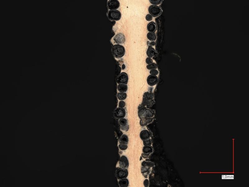 in the monograph on European species of Xylaria by Jacques (http://www.ascofrance.com/uploads/xylaria/201406.pdf) it is mentioned under X. oxyacanthae that anamorphic stromata of Xylaria are known from nuts of J. regia but they have not been identified to species yet. Here we have a collection made by a friend with stromata on old nutshells of J. regia and we are wondering if this could in fact be X. oxyacanthae.