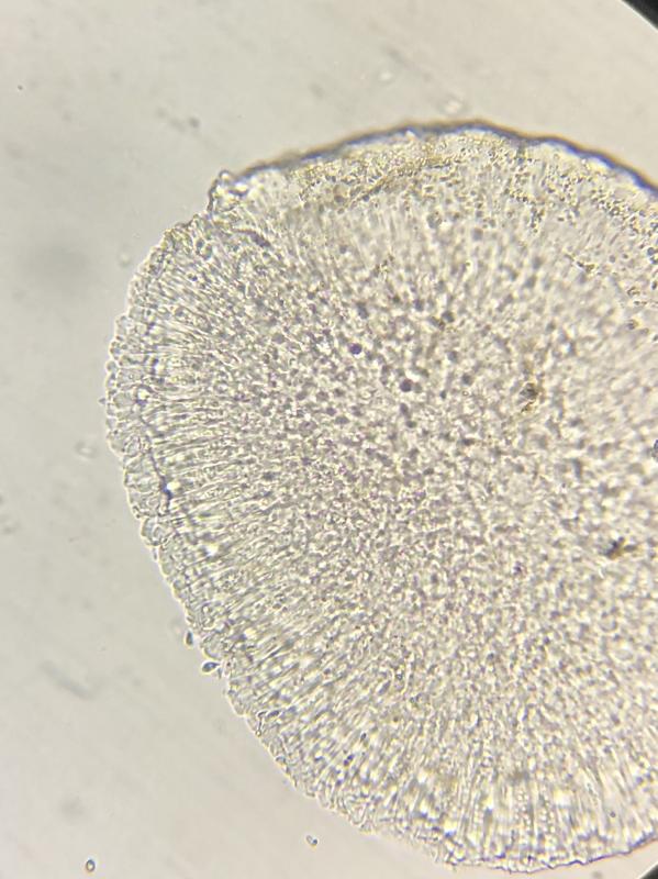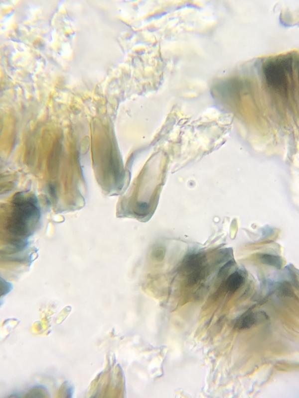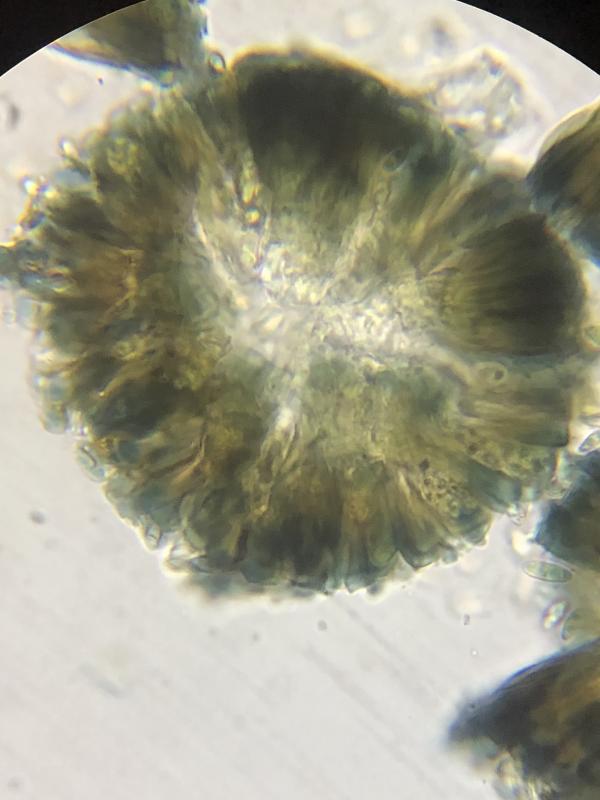 asci react blue in top with lugols and hym reacts redish.