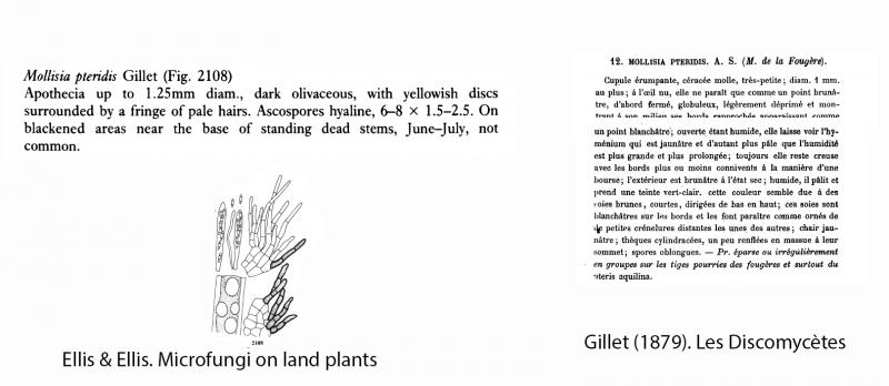 This fungus that Ellis & Ellis assimilate to Mollisia pteridis and that fits very well with the drawings they make of the lateral and marginal hairs, could also fits with Gillet's succinct description.