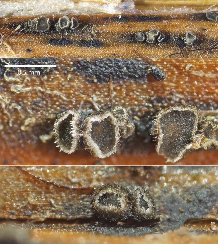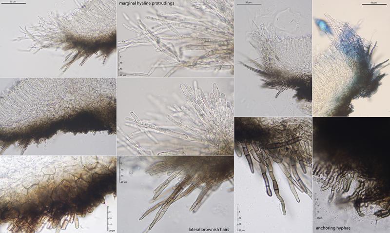 Obviously it is not Fuscolachnum pteridis and I don't think it can be a Pirottaea either. Morphologically, with these submarginal or lateral long brownish septate hairs, it even remember me Pyrenopeziza escharodes.