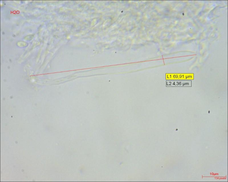 Forgive my critical attitude, Zotto, but could these eventually be Hyphodiscus (hymeniophilus)? It's a gues based on a paper of Quijada et al. 'Studies in Hyaloscyphaceae associated with major vegetation types in the Canary Islands I: Cistella and Hyphodiscus' (2015). There are, among other things, a few photos of the hairs that are very similar to those of the specimen discussed here.